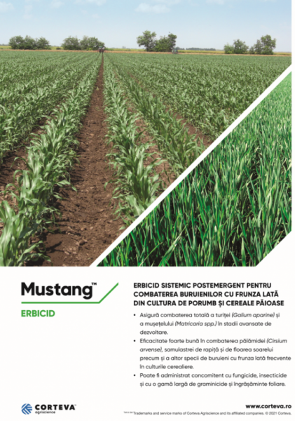 Compania Corteva Agriscience, liderul detașat pe segmentul de erbicide la cereale păioase in anul 2021, deține în portofoliu cea mai eficace soluție pentru combaterea turiței (Galium aparine) și a mușețelului (Matricaria spp.) din culturile de cereale păioase și porumb, respectiv erbicidul Mustang™.