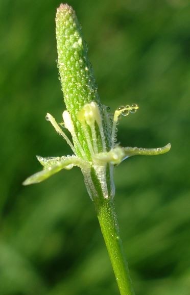 5. Descriere plantă: Plantă scundă, de până la 10 cm, frunze numeroase, îngust-liniare, cu margini întregi, tulpini scapiforme, numeroase, înveliş floral dublu, sepale alb-verzui.