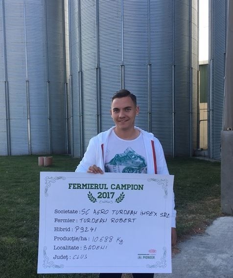 Următorul fermier campion, domnul Emil Turdean, își desfășoară activitatea în județul Cluj, localitatea Bădeni. Din cele 800 de hectare pe care le lucrează, pe 187 a semănat anul trecut porumb, iar hibridul P9241 i-a asigurat producția de 10.688 kg/ha. “În toamnă am dezmiriștit cu un disc mare și am aplicat 100 kg/ha de triplu superfosfat, iar în primăvară am efectuat o trecere cu combinatorul și am 200 kg/ha de azotat de amoniu. Apoi am semănat după jumătatea lunii aprilie. Am ales să aplic un erbicid și un tratament și un îngrășământ foliar înainte de formarea ultimei perechi de frunze. Nu am prășit și nu am mai aplicat altceva culturii, iar recoltatul l-am început la sfârșitul lunii octombrie. Anul acesta voi semăna 100 ha cu porumb și merg pe același hibrid Pioneer – P9241”, a declarant Emil Turdean.