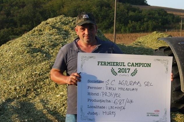 Următorul fermier campion, domnul Radu Moldovean, își desfășoară activitatea în localitatea Lechința, unde a obținut 68 t/ha. “Lucrez 50 ha, iar porumb am avut anul trecut pe 35 ha, dintre care pe 22 ha am sem[nat porumb pentru siloz. Cultura premergătoare a fost tot porumbul, am pregătit terenul din toamnă când am arat la 25-30 cm și în primăvară am efectuat o lucrare cu freza. La semănat, în data de 1 mai, am aplicat complexe 20.20.0 - 150 kg/ha și 200 kg/ha de azot. Am erbicidat o singură dată, doar asta am aplicat culturii. Am recoltat în luna septembrie și am fost foarte mulțumit de producție. Anul acesta am ales același hibrid Pioneer”, a punctat fermierul.