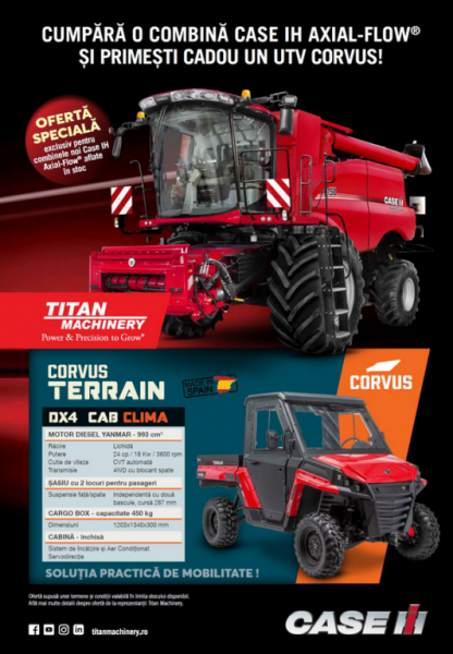 Ofertă CASE IH AXIAL-FLOW + UTV CORVUS CADOU