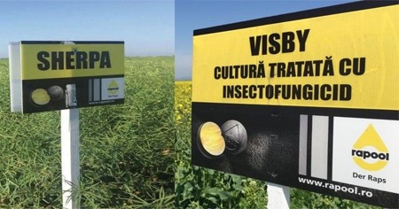 După recoltare am întrebat prietenii din Germania despre VISBY si aceștia mi-au spus că fac constant peste 4500kg/ha în mod constant. Chiar daca la majoritatea hibrizilor de rapiță depășesc producția de 4000 kg/ha, frumusețea lanurilor de VISBY din Germania m-au determinat să cultiv VISBY în România. Așa cum am spus în anul 2010 am adus sămânța din Germania și am experimentat-o pe aproximativ 200 de hectare, realizând o producție similară cu colegii mei din Germania, 4300 kg/ha. Am observat că ramifică foarte bine, uniformitate perfectă și o rezistență mare la iernare. În 2012 am descoperit hibridul SHERPA și având mare încredere în hibrizii RAPOOL am remănat cea mai mare suprafață cu SHERPA, dar fără să abandonez VISBY. Hibrizii care an de an se apropie de 4500-5500 kg/ha. Este adevărat că pentru a obține aceste producții, presupune o tehnologie corectă, mai ales pentru pregătirea terenului și semănat. De asemenea am acordat o mare grijă începând cu răsărirea și până la recoltare. Se acordă o mare atenție îmburuienării; am aplicat un tratament preemergent pe bază de dimetaclor și clomazone și nutriție realizată în etapele de dezvoltare ale plantelor. În campania 2014-2015 am folosit graminicid pe bază de propaquizafop; 70kg/ha în total înainte de semănat, 100-120kg s.a. N/ha fracționat și 2 tratamente cu fungicid pe bază de tebuconazol 0.5l/ha în primă fază, apoi produs comercial pe bază de metconazol și mepiquat clorură 1.0 l/ha în a doua fază. Am acordat o atenție deosebită insectelor, odată cu temperatura de 5 grade in sol. Primăvara 0.5 litri de produs comercial pe bază de tebuconazol, în primăvară devreme iar 1 litru tot de produs comercial pe bază de tebuconazol la înflorire deplină. Cu această tehnologie am obținut la hibridul SHERPA peste 5000kg/ha.''