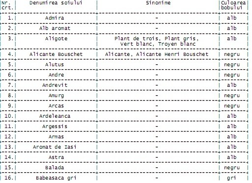 Ordinul 61 din 2006 privind soiurile de struguri de vin din Romania