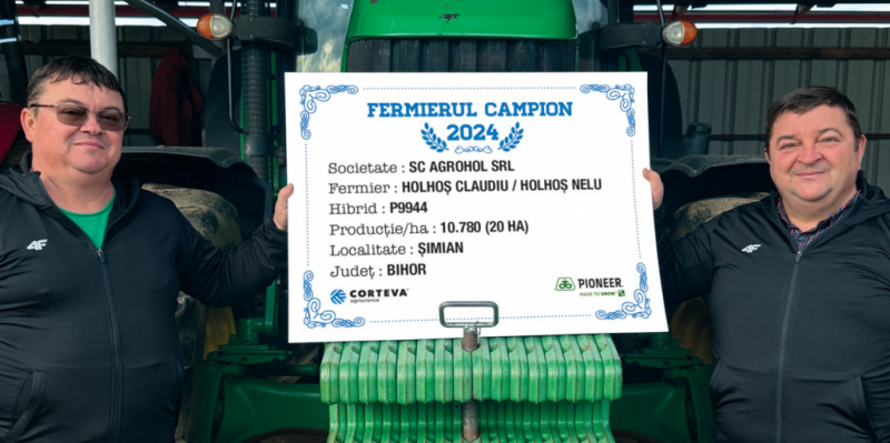 Așadar, fermieri campioni au devenit și domnii Nelu și Claudiu Holhoș din județul Bihor. Aceștia își desfășoară activitatea în localitatea Șimian, cultivă 430 ha, iar anul trecut 125 ha au fost cultivate cu porumb. Pe o suprafață de 20 ha au avut hibridul P9944 și au obținut o producție de 10.780 kg/ha.