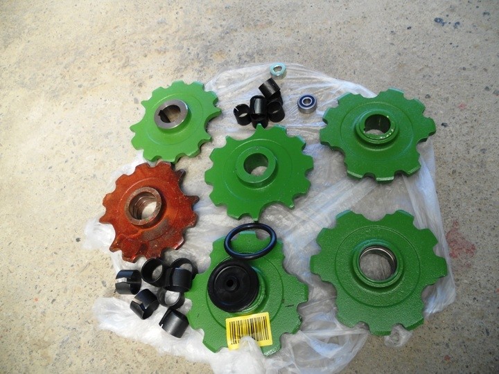 pinioane drepte,conice,metal sau plastic,starter,role,rulment,racleta,dinti pik-up,clopot,rola cu cauciuc,rola tip rulment ,carcasa,capac grup,pinion grup,coroana diverse alte piese. Pret in functie de piesa. contact : nathalag@yahoo.com