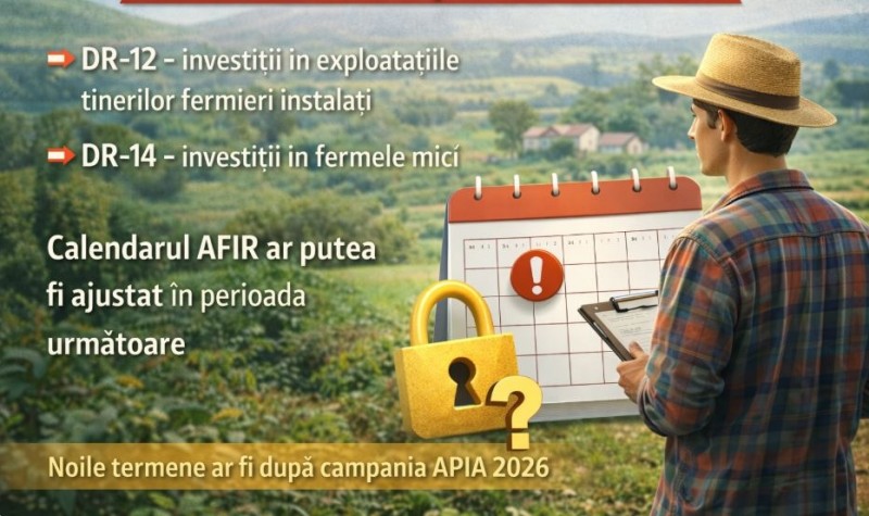 Două dintre cele mai așteptate intervenții de finanțare dedicate fermierilor români ar putea fi lansate mai târziu decât era prevăzut inițial, pe fondul apropierii campaniei APIA pentru anul 2026. Surse din sectorul agricol indică faptul că Autoritatea de Management din cadrul Ministerului Agriculturii și Dezvoltării Rurale (MADR) analizează ajustarea calendarului de lansare a unor linii de finanțare gestionate prin AFIR.