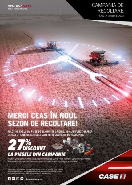 Titan Machinery România desfășoară în această perioadă o campanie promoțională la piese de schimb de origine pentru combinele de recoltat Case IH.