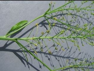5. Descriere planta: plantă ce poate atinge înălțimea de 80 cm, cu frunze lanceolate, glabre; cu frunze mijlocii mai mici, cu flori mici, semințe brun-deschse, pedicel fructifer de 3-6 ori mai lung decât silicula.
