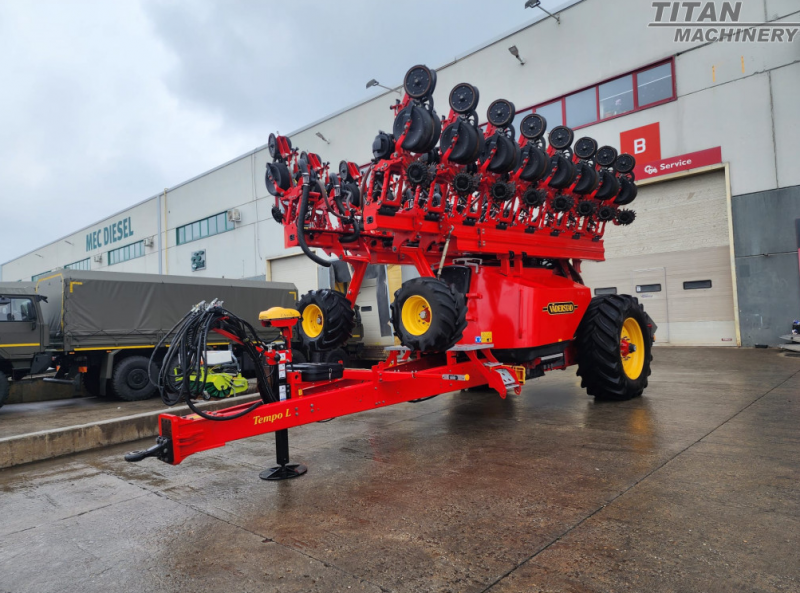 Oferta acestei săptămâni la Titan Machinery este cea mai avansată semănătoare de precizie, în regim de mare viteză, de la Väderstad, respectiv semănătoarea de ultimă generație, cu buncăr central, Väderstad Tempo L 16 (n.red. 16 rânduri). Semănătoarea pneumatică are o lățime de lucru este de circa 12 metri, seamănă extrem de precis în rând și în adâncime, la viteze de peste 20 km/h.