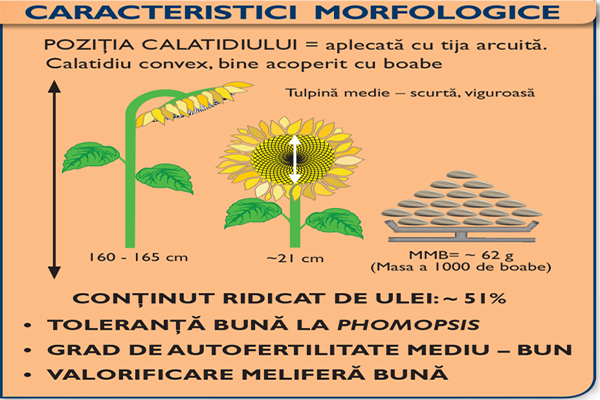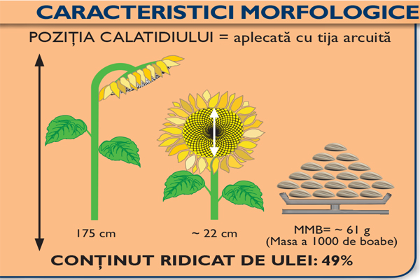• Hibrid cu rezistenţă genetică la rasele A-F de Orobanche cumana;