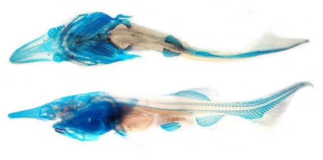 Polyodon spathula este o specie considerata ca primitiva, caracterizata prin schelet cartilaginos si valvula spirala specifica sturionilor, precum si de un rostrum specific speciei.