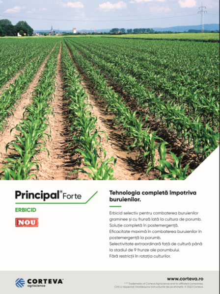 Compania Corteva a lansat un nou erbicid destinat combaterii în postemergență a buruienilor, atât monocotiledonate cât și dicotiledonate din cultura porumbului, erbicidul Principal Forte.