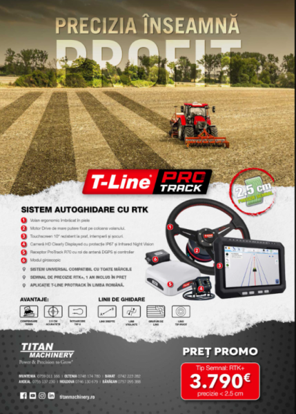 Titan Machinery România oferă un preț promoțional la sistemul universal de autoghidare T-Line ProTrack (n.r. brand propriu al Titan Machinery), astfel încât fermierul să urmărească obiectivele de profitabilitate.