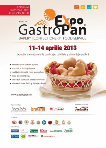GastroPan, cea mai mare expoziţie de specialitate ce reuneşte furnizori, producători, operatori şi consumatori din domeniile panificaţiei, cofetăriei şi alimentaţiei publice va prezenta, la standurile a peste 130 de expozanţi din 24 de ţări, o gamă variată gamă de soluţii pentru afacerile de profil, dar şi numeroase concursuri şi demonstraţii practice. Expoziţia poate fi vizitată în perioada 11-14 aprilie, între orele 10-18 (duminică între orele 10-16), completând talonul de acces disponibil pe www.gastropan.ro.