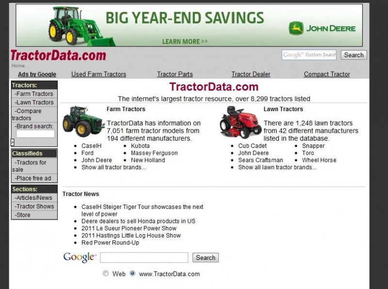 In cadrul siteului TractorData.com gasiti informatii si caracteristici tehnice ale tuturor tractoareleor fabricate din anii 80' pana in prezent un site foarte interesant unde puteti citi totul despre istoria tractoarelor si despre noile tehnologii aplicate pe tractoarele din ziua de astazi. Intra si viziteaza siteulu TractorData.com