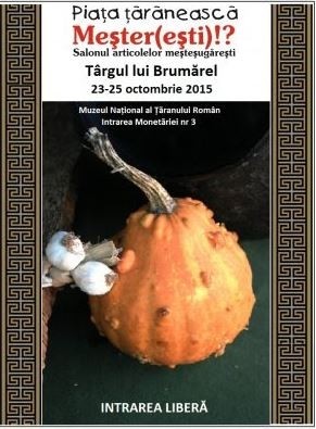 Piața Tărănească și Meșter(Ești)! organizează din 23 până în 25 octombrie 2015, în curtea interioară a Muzeului Național al Țăranului Român, din sos. Kiseleff nr 3 Târgul lui Brumărel.