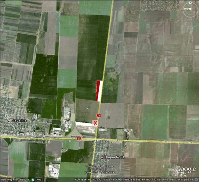 Vand 10000mp teren cu deschidere 85m la DN21 in zona cu constructii industriale cu gaze si electricitate pe teren, la 1500m de nodul rutier Drajna, proprietar, acte, com Dragalina jud Calarasi pret 15000 euro.