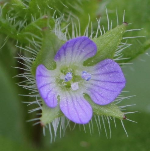 5. Descriere planta: plantă cu radăcină subțire, ramificată de la bază și tulpină ce ajunge până la 30 cm, frunzele inferioare opuse sunt păroase și pețiolate, florile sunt solitare, de culoare albastru deschis sau violet. Planta are semințe scobite in partea inferioară.
