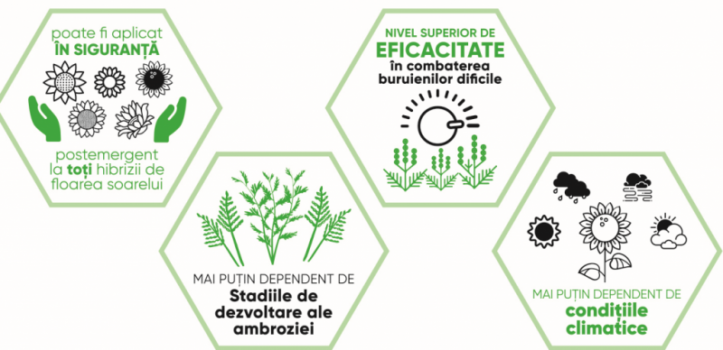 - EFICACITATE EXTRAORDINARĂ în combaterea buruienilor dificil de controlat, chiar și a biotipurilor rezistente, din cultura de floarea soarelui