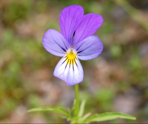 5. Descriere planta: plantă ce poate ajunge până la 40 cm, cu petalele superioare violet inchis si petalele laterale albe sau galbene; pintenii sunt albastrii violet iar fructul este ca o capsulă alungită.