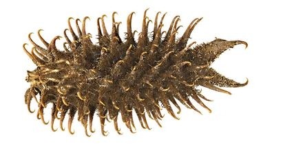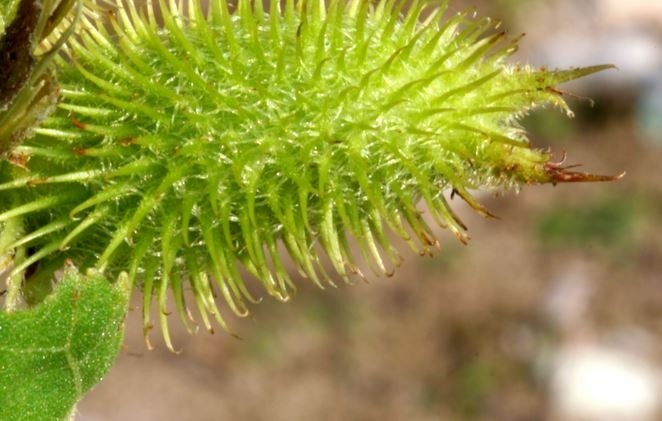 5. Descriere planta: plantă ce poate ajunge până la 100 cm, cu frunze alterne lung petiolate, aspre și păroase; fructul are spini viguroși cu coarne viguroase, drepte sau puțin curbate.